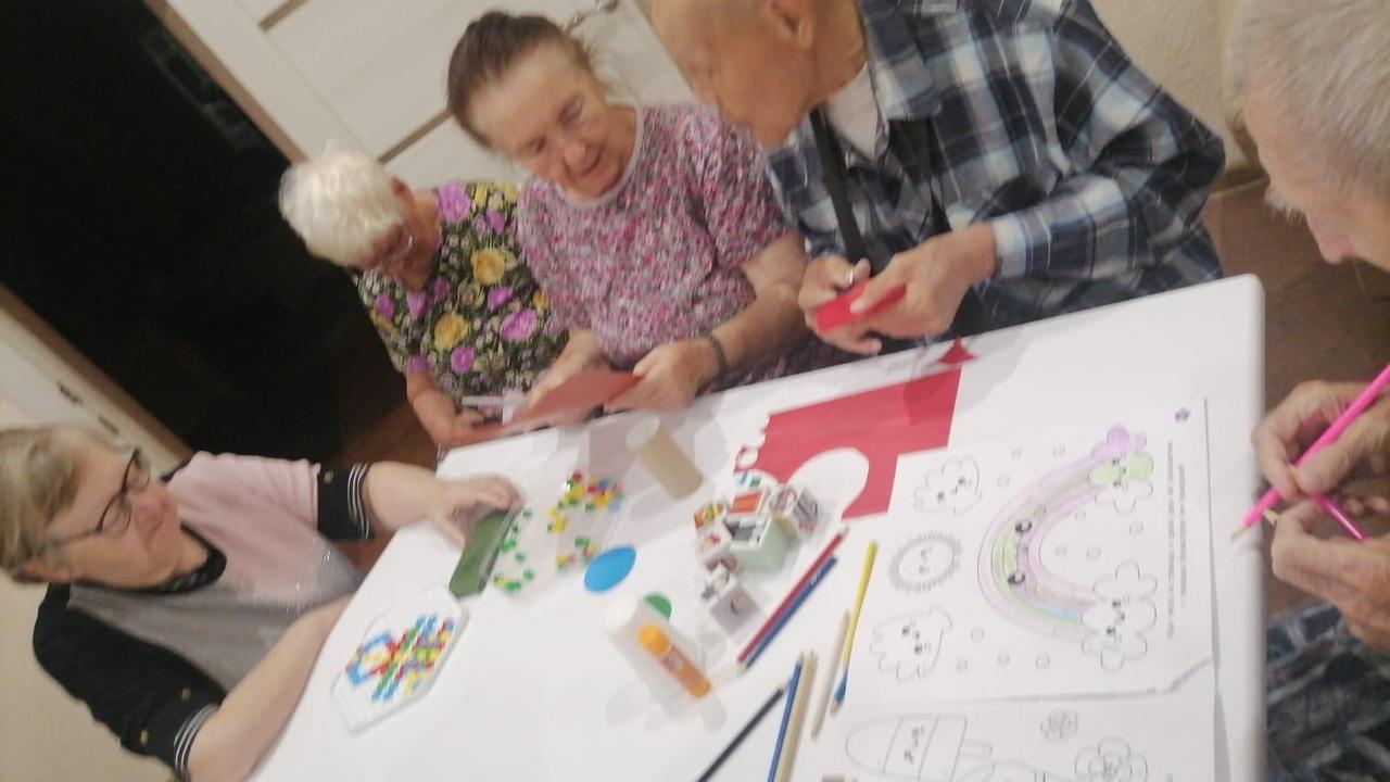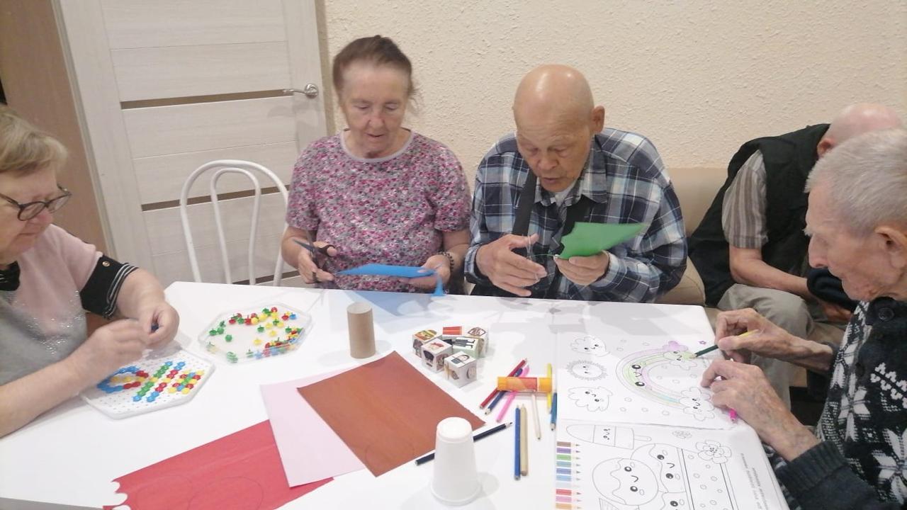 В творческих мастерских наши Резиденты с удовольствием собирают мозаику, создают уникальные поделки, рисуют картины и рассматривают фотографии, вспоминая яркие моменты своей жизни.